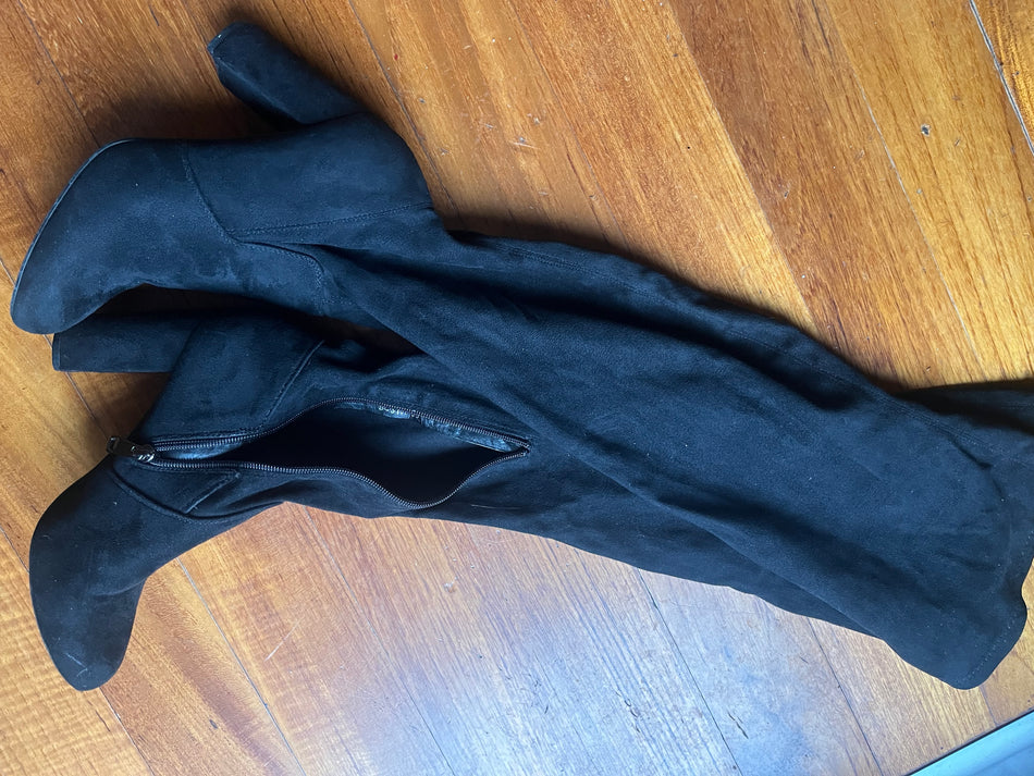 High-quality suede boots, these tall boots in size 38 offer both style and comfort. Perfect for any occasion, these boots elevate your look by providing a snug and secure fit. Step out with confidence and make a statement with these...